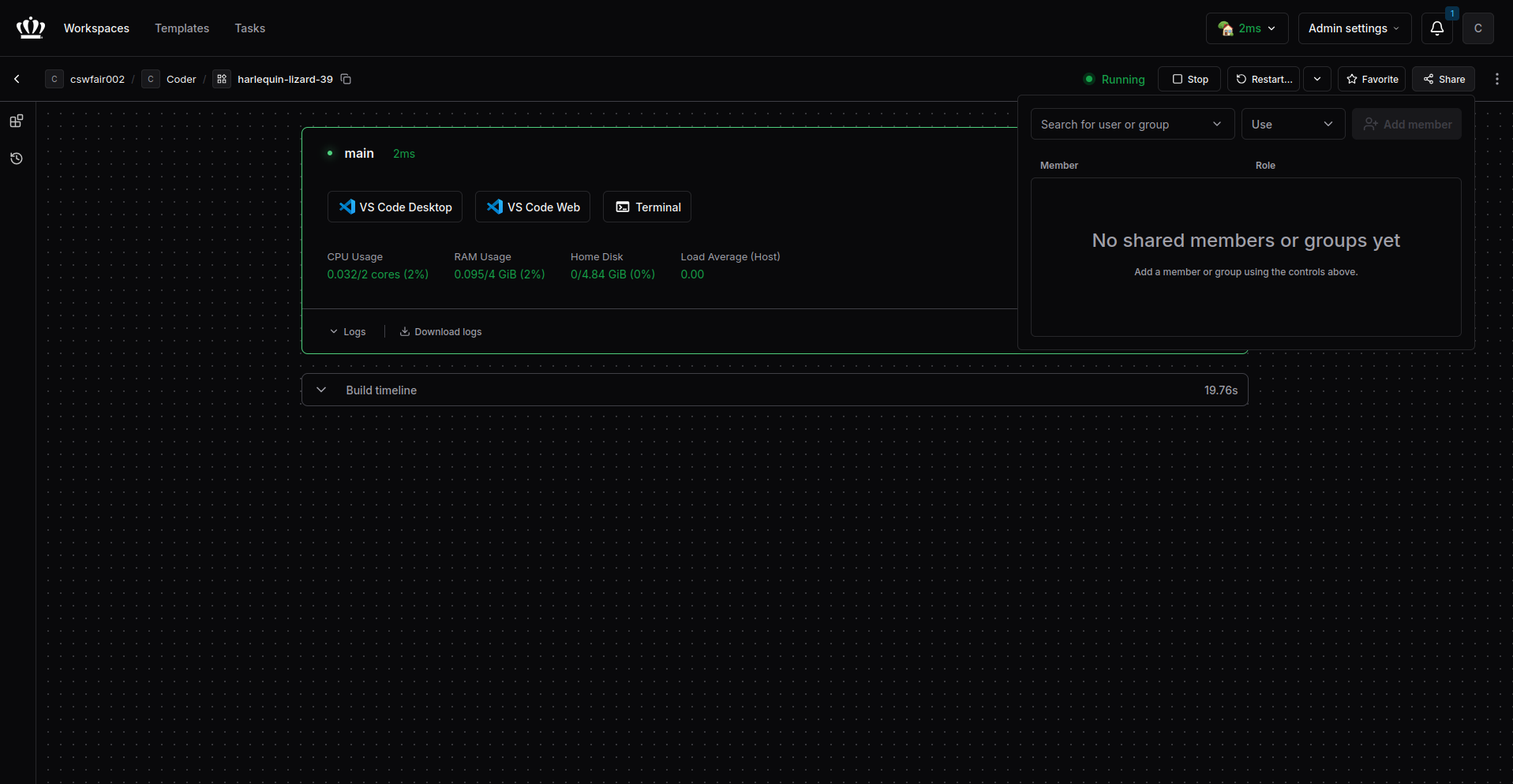 Follow these steps to create and use a Coder workspace.