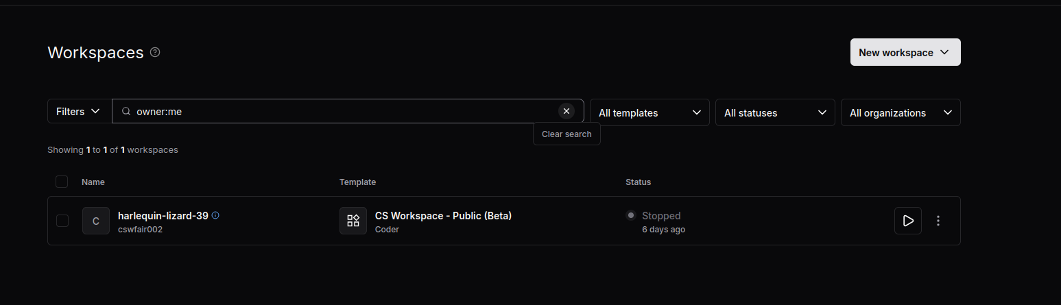 To view workspaces that have been shared with you, you need to clear the default filter.